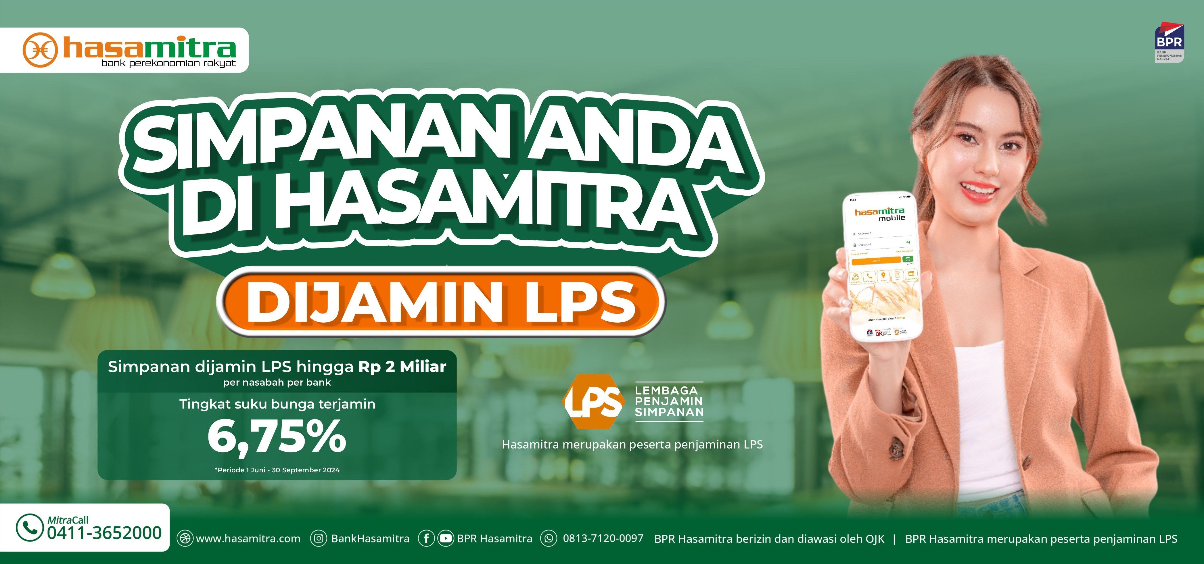 BPR Hasamitra berizin dan diawasi oleh Otoritas Jasa Keuangan (OJK) dan merupakan peserta penjaminan Lembaga Penjamin Simpanan (LPS).